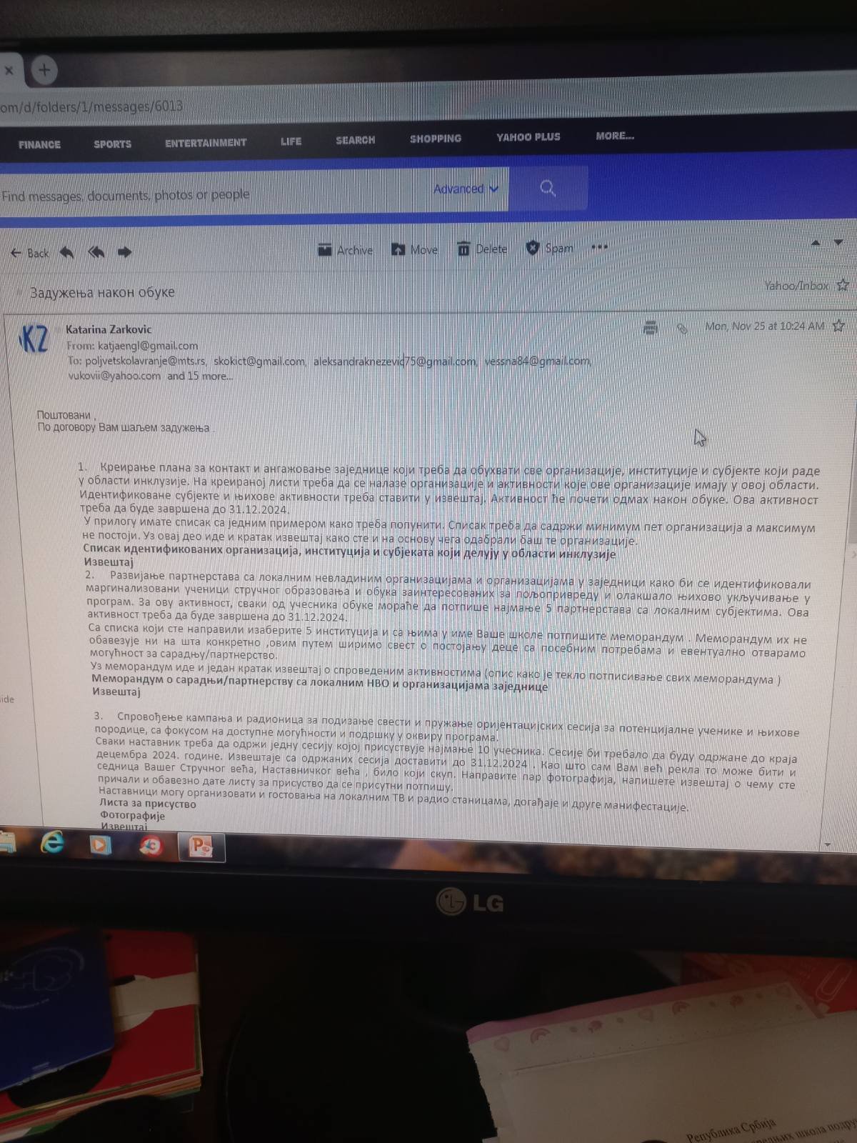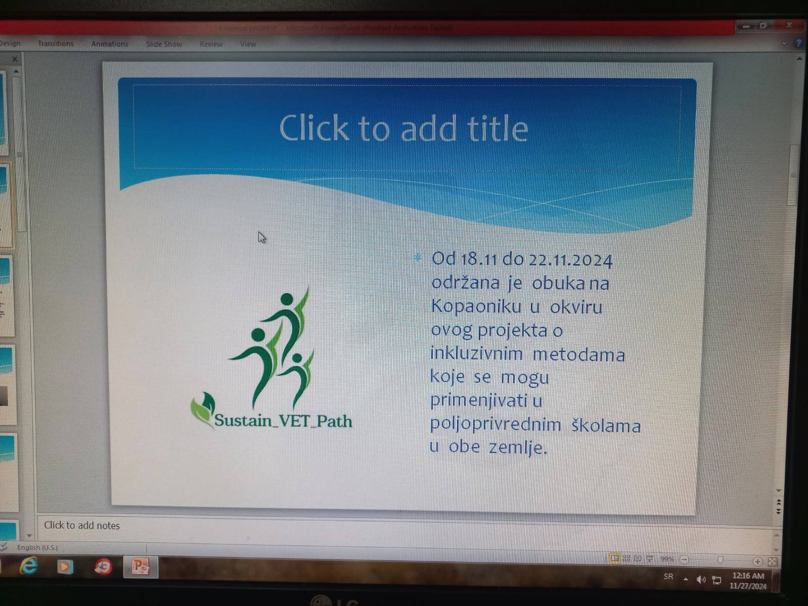 На Здружението на средни училишта од областа на земјоделството, производството и преработката на храна одржано во Ваљево во периодот од 29.11.-1.12. На Копаоник беше претставена обуката „Инклузивни методи на настава“ во рамките на проектот Еразмус + „Различни патишта во одржливото земјоделство: зајакнување на студентите за професионално образование и обука“.