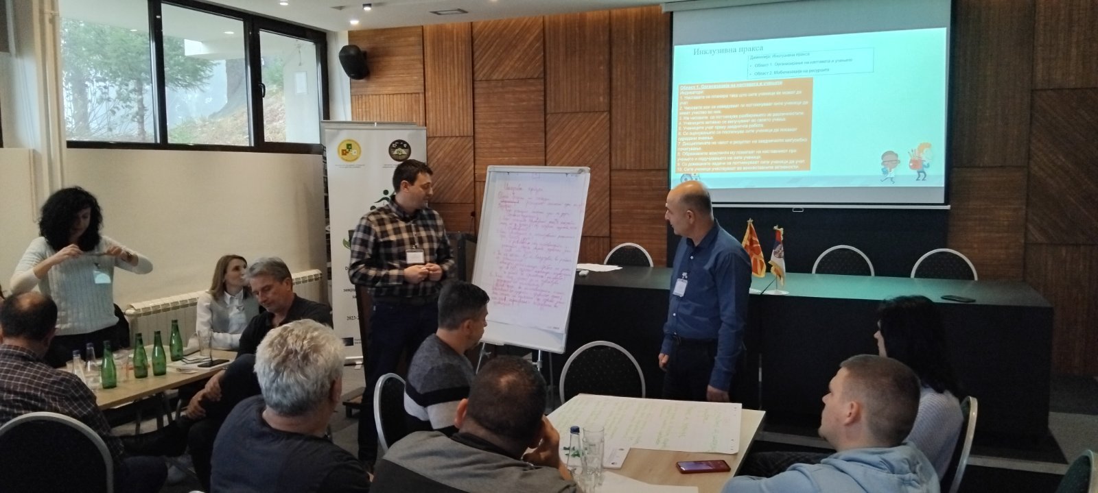 Вториот ден од обуката започна со работилница на која учесниците во групи одговараа на прашањето: Кои ученици се сметаат за ученици со посебни потреби и зошто беа вклучени во таа група?
